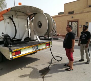 - ثم يبدأ العمال بعملية التسليك والتنظيف والتطهير للمجاري.